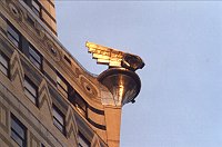 einzige architektonische Huldigung an die Chrysler-Automobile. Allenthalben Kühlerhauben,