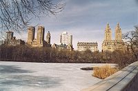 Wir schlendern gemütlich am The Pond vorbei - einem der vielen schön angelegten Teiche, füttern ein paar der zahlreichen Eichhörnchen und schauen dem Treiben auf dem Wollman Rink zu. Wo sich heute die Schlittschuhläufer im frostigen Sonnenschein tummeln, kann man im Sommer nach Herzenslust skaten. Etwas nordöstlich ist eine kleine Felsformation, von der wir einen wundervollen Blick auf den südlichen Central Park und Midtown haben. Überhaupt überrascht uns neben der Größe des Parks, immerhin 345 ha und damit gut 5% der Fläche Manhattans, vor allem die große Vielfalt der angelegten Landschaften. Zwischen sanft ansteigenden Hügeln schlängeln sich Bäche, Schilf wächst an den Ufern romantischer Seen und aus kleinen Wäldchen wachsen Felsen empor. Dazwischen erhaschen wir immer wieder Blicke auf die beeindruckenden Gebäude der Upper East oder West Side. Plötzlich glauben wir uns in einem Gewirr kleiner Schluchten verlaufen zu haben, doch schon einige Meter weiter gleitet unser Blick schon wieder über weite, schier endlose Wiesen.